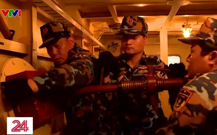 Với các thao tác nhanh chóng, chính xác, sử dụng thành thạo các công cụ chống chìm, chỉ trong thời gian 1 phút, lỗ thủng trên thân tàu đã được các chiến sĩ bịt kín.