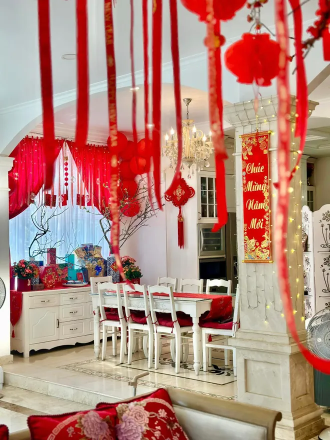 Ca sĩ Lệ Quyên cũng vừa khoe bữa cơm đầm ấm và vài góc trong biệt thự ở Hà Nội. Chị và bạn trai kém tuổi Lâm Bảo Châu cùng nhau trang trí nhà đón Tết.