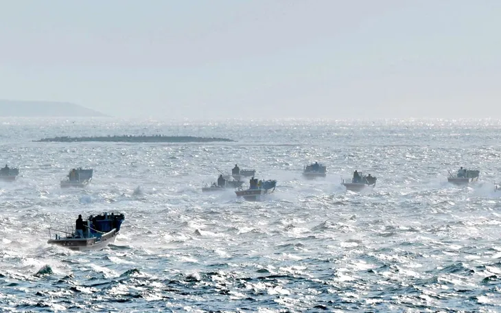Tàu cá tiến vào khu vực thu hoạch tảo kombu ngoài khơi Nemuro, Hokkaido, Nhật Bản, ngày 2/6/2018 (Ảnh: The Asahi Shimbun/Getty Images)