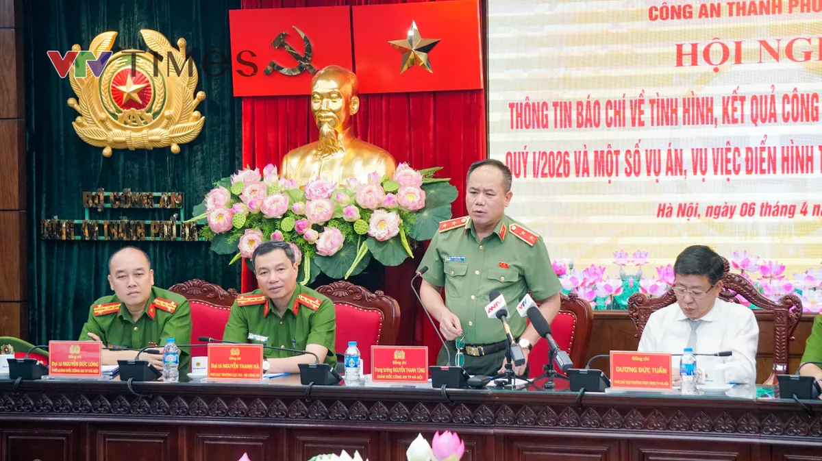Trung tướng Nguyễn Thanh Tùng, Giám đốc CATP Hà Nội phát biểu tại Hội nghị thông tin báo chí về tình hình, kết quả công tác đảm bảo an ninh, trật tự Quý I/2026 và một số vụ án, vụ việc điển hình trên địa bàn TP Hà Nội ngày 6/4. (Ảnh: Phùng Anh)