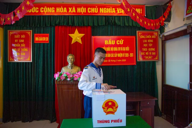 Đặc biệt, Tổ bầu cử đã chủ động tiếp cận tàu cá QNg 96435 TS (Quảng Ngãi) đang đánh bắt tại khu vực. Ngư dân được tuyên truyền về ý nghĩa cuộc bầu cử, hướng dẫn đăng ký cử tri vãng lai và đối chiếu CCCD để trực tiếp bỏ phiếu ngay trên tàu hải quân. Điều này bảo đảm mọi công dân, dù đang mưu sinh xa bờ, đều không bị bỏ lại phía sau trong ngày hội lớn.