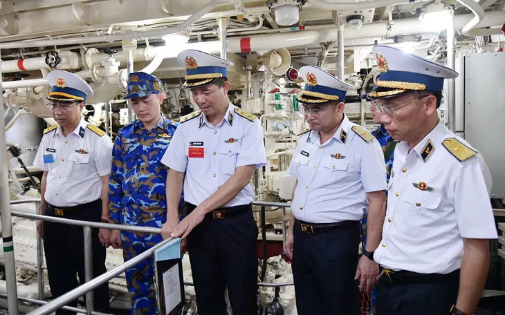 Chính ủy Hải quân kiểm tra nền nếp chính quy ngành kỹ thuật trên Tàu 263, Hải đội 515, Lữ đoàn 175.J