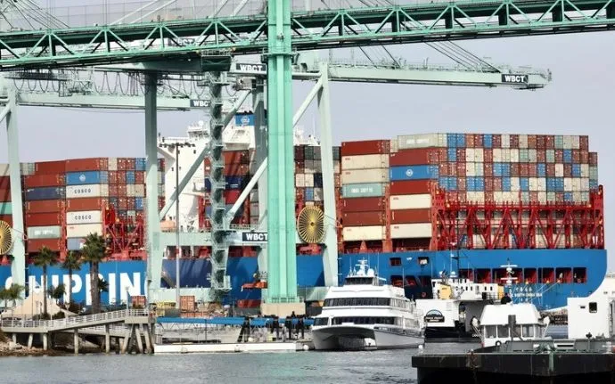 Quang cảnh cảng hàng hóa tại Los Angeles, California (Mỹ). (Ảnh: THX/TTXVN)