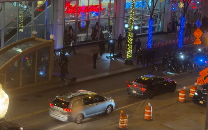 Chưa đầy một giờ trước đó, vào lúc 21h50, cảnh sát khu vực đang tuần tra tại khu nhà 100 phố North State và phát hiện một nhóm đông người trên vỉa hè gần Nhà hát Chicago.