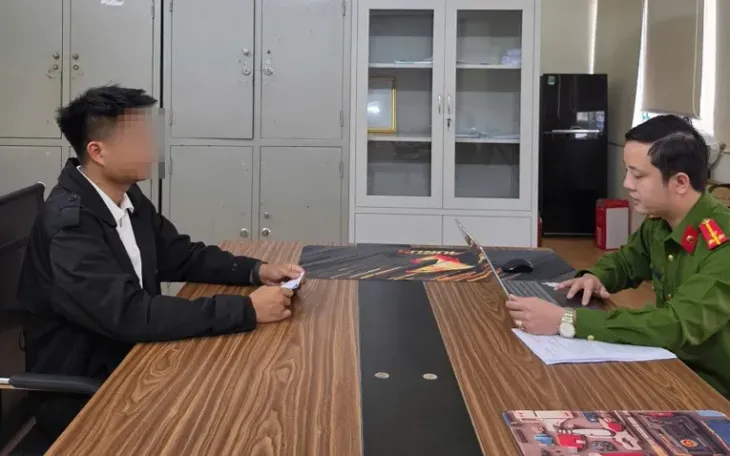 Cán bộ công an làm việc với ông T. Ảnh: Công an Hà Tĩnh.