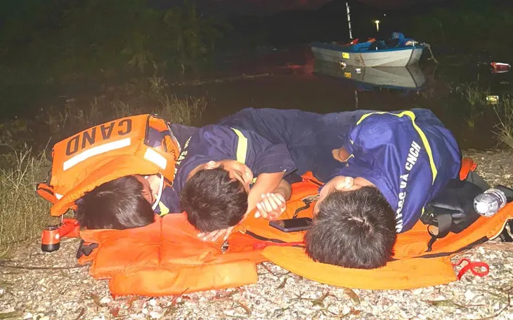 Hình ảnh các chiến sĩ tranh thủ chợp mắt sau những giờ căng mình giữa dòng nước xiết. Ảnh: Phòng Cảnh sát PCCC & CNCH Nghệ An