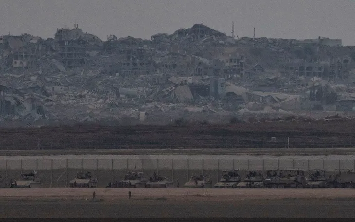 Xe tăng và xe bọc thép Israel tại biên giới với Gaza, ngày 21/8/2025 (Ảnh: AP/Maya Levin)
